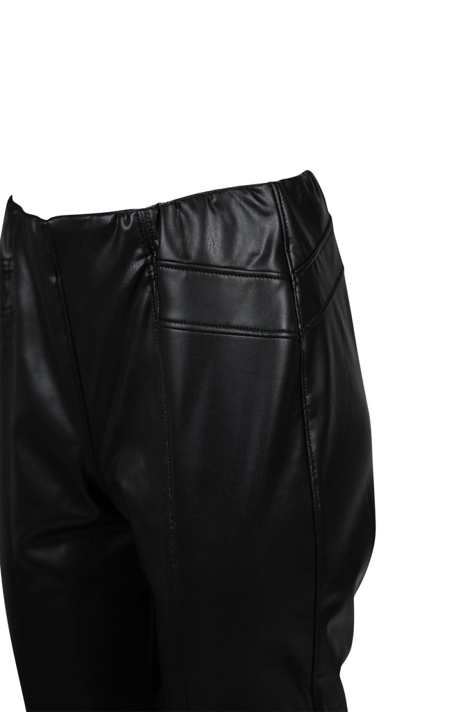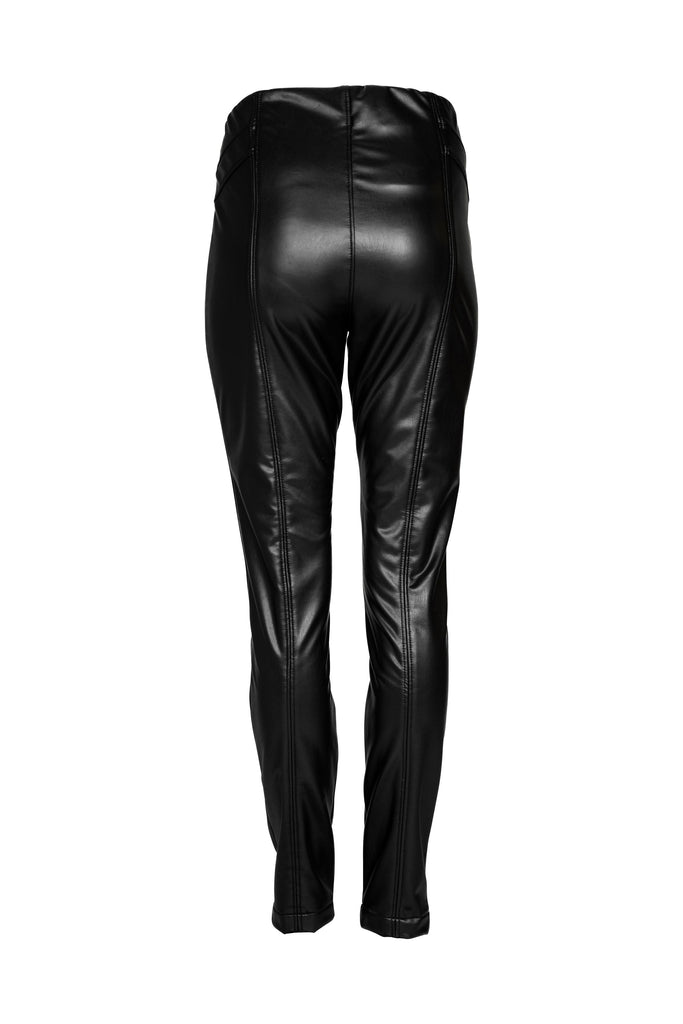 Die Leggings aus softem Kunstleder ist körpernah mit dekorativen Nähten gearbeitet. Die Taille ist mit einem innenliegenden Gummi gearbeitet. Die weiche und elastische Ware sorgt für hohen Tragekomfort und eine perfekte Passform. Ein absolut vielseitiges Basic.